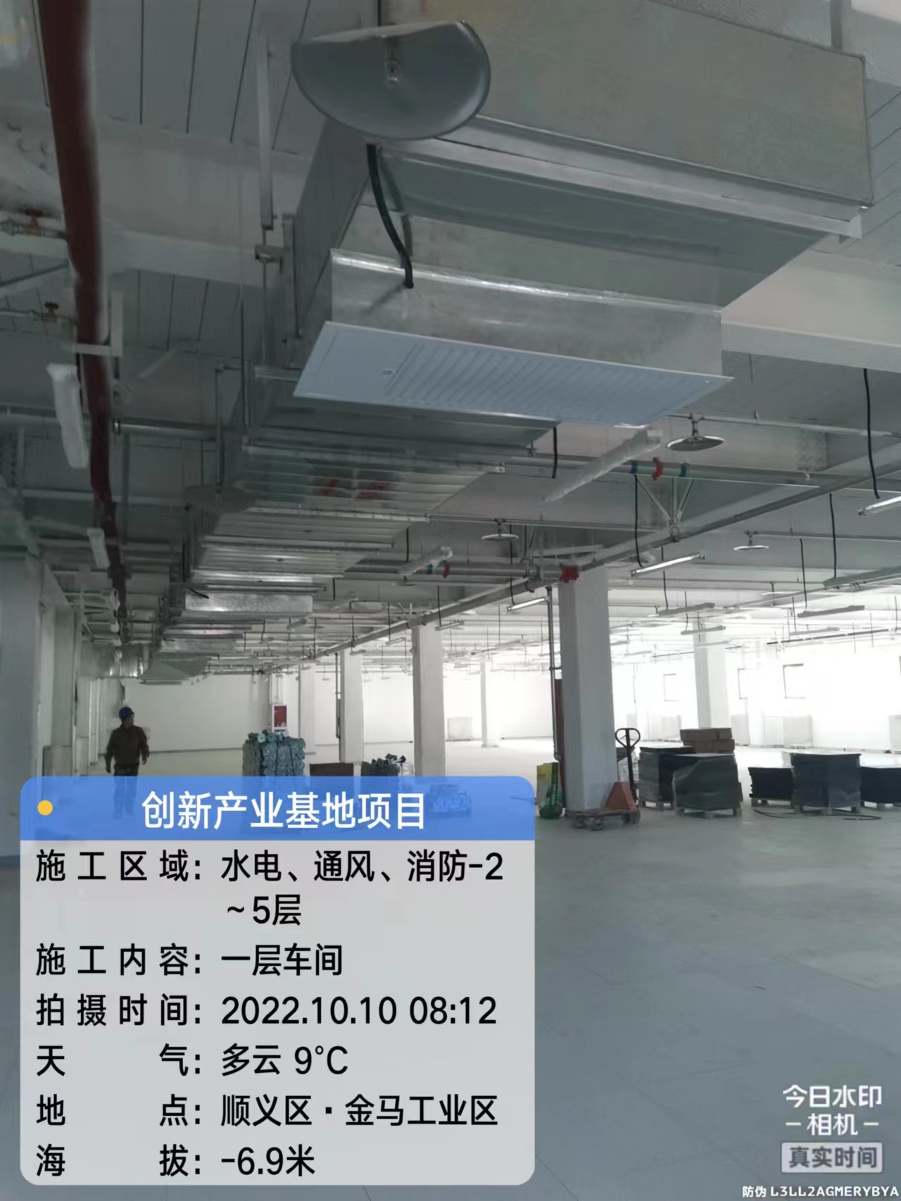 順義區(qū)創(chuàng)新產(chǎn)業(yè)基地(廠房)項目:位于順義區(qū)高麗營鎮(zhèn)金馬工業(yè)園,總建筑面積32983.31平方米。我司承接本項目的消防.通風(fēng)和機(jī)電安裝工程,在施工過程中,技術(shù)人員在現(xiàn)場指揮,對容易出現(xiàn)質(zhì)量缺陷的工序及部位提前做出正確的施工方案,對每一位工人進(jìn)行專業(yè)的安全及技術(shù)培訓(xùn)及技術(shù)交底。