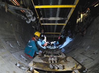 來到地下二層,眼前一片空蕩,只能看見工人們正在緊張施工。“這里將有4個160米×160米的生物池?!睋?jù)介紹,碩大的生物池占據(jù)地下兩層的空間,1000多公里的管道和12000臺設(shè)備目前正在緊鑼密鼓地鋪設(shè),預(yù)計明年6月份,這個地下水廠將正式完工投用。